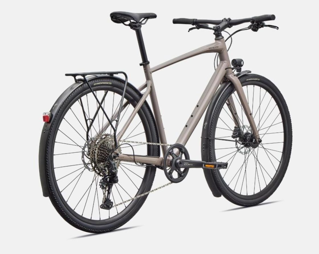Specialized A1 Premium Aluminum, Fitness Geometry, butted tubing, internal cable routing, flat-mount disc, quick-release, Plug + Play rack/fender mounts
