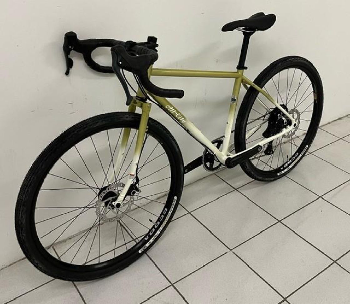 Käyrätankoinen isorenkainen teräsrunkoinen jokapaikanpyörä.