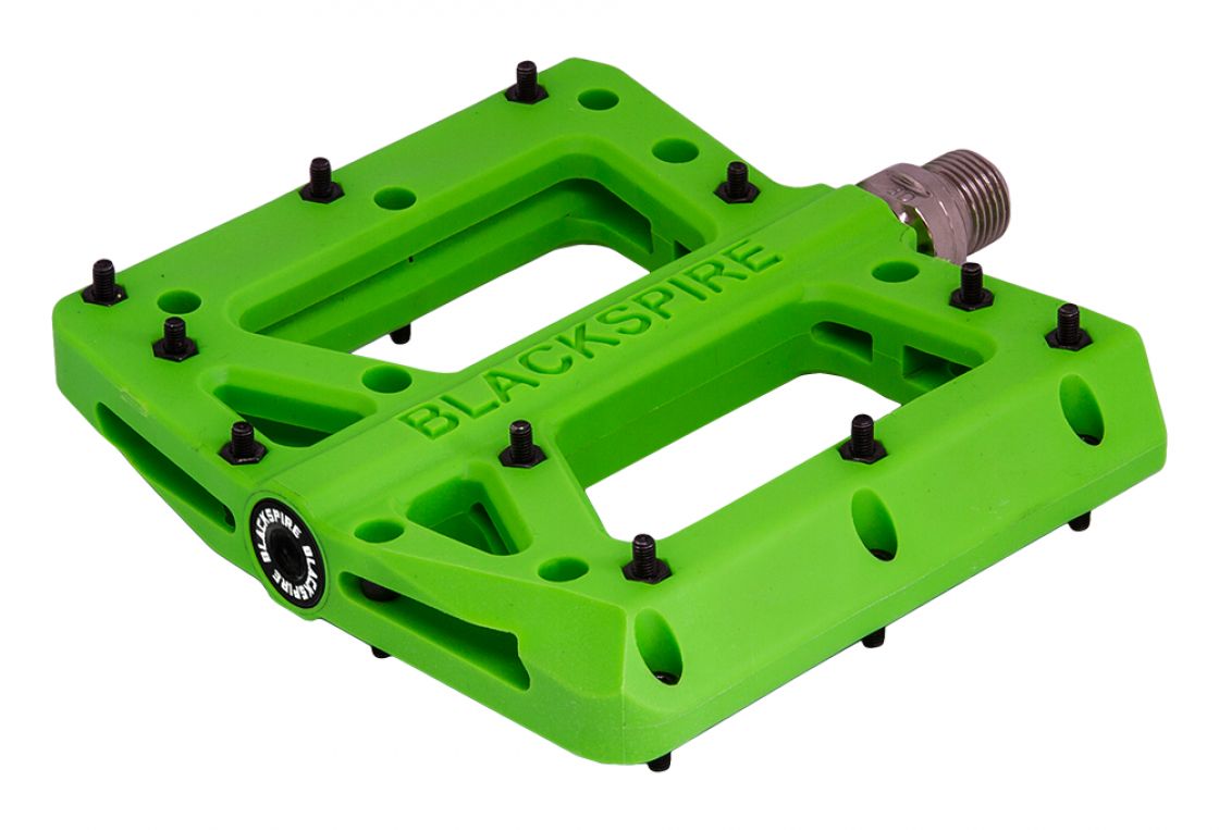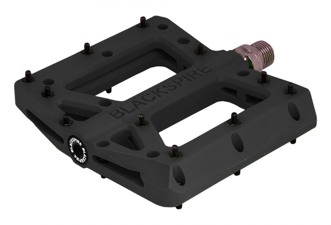Laadukkaat ja tukevat nyloniset flat-polkimet vaihdettavilla ja säädettävillä piikeillä.