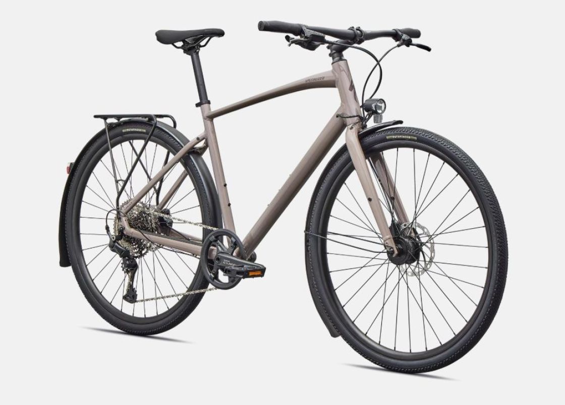 Specialized A1 Premium Aluminum, Fitness Geometry, butted tubing, internal cable routing, flat-mount disc, quick-release, Plug + Play rack/fender mounts